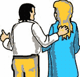 physical contact. Student usually slightly ahead when crossing the room.