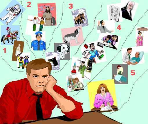 What the illustration is supposed to show are different Chains of associated incidents going back in time. The Chains shown are numbered 1 to 5. The incidents in a Chain are held together by similar content. Example: "A time you felt pain in your shoulder" goes back to earlier times pc had the same pain in the shoulder. Chains are held together by (1) subject, like "A time you lost money"; or by (2) 'Somatic', meaning a body sensation, pain or emotion ("a time you felt sad", "a time you felt happy", "a time you had a stomach ache", "a time you felt sexual attraction"). The factors holding one Chain together are similar to a search criteria in a data base. You can 'search' - go earlier similar - on a specific Somatic or on Content and find the basic source of it - the first time it happened. The 55 perceptions mentioned under The Time Track were found and classified simply from what type of details many, many pc's in sessions were capable of recalling. When this was all added up the list below was put together. Pc's/Students will get a good understanding of this in Recall processes, such as the Self Analysis Lists. On Grade 5, Engram Clearing, the somatics Chains with painful and traumatic content are tracked down. They go way back in time and can be recalled and be re-experienced in great detail, leading to an As-is-ness of the pictures and the pains and misemotions, etc. contained in them. When this happens the Engrams and the Chain is said to be erased. The 55 perceptions that are recorded and are possible to recover in processing are: 1. TIME (when it happened and the duration of an incident). Not all pc's will have all these perceptions available to them - especially not early on. The pc's ability to recall it or even re-experience or relive it in session will however develop during processing. Some pc's may have a 'shut-off' of one or more perceptions. This may be handled down the line. That does not mean, that this perception wasn't recorded at the time of the incident. The Time Track is peculiar in, that it responds real well and accurately to the auditor's command - like "Go to an incident containing (somatic or other content)" and "Go to an earlier incident containing (same somatic or same content)". Most of the Time Track is unknown to the pc. This part only seem to react on the pc - meaning not under his voluntary control. Instead the pc experiences this reactive part of his Time Track by the reactive pictures forcing their content on him as pains, upsets, emotional disturbances, strange ideas, odd behavior, etc. This collection of reactive pictures is also called the Reactive Bank. The common purpose of life and all its activities can be understood to be Survival. The original purpose and function of the Reactive Bank seem to have been to warn the pc about dangers and take over control to steer him out of danger; thus help him survive in critical situations.
