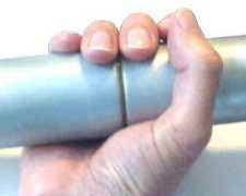 The Solo-auditor maintains a silent auditing comm cycle with his case and has to hold auditor and case separate. But the basic rules of Grades auditing apply. He holds the special Solo-cans in one hand, writes report and handles Meter with the other. |